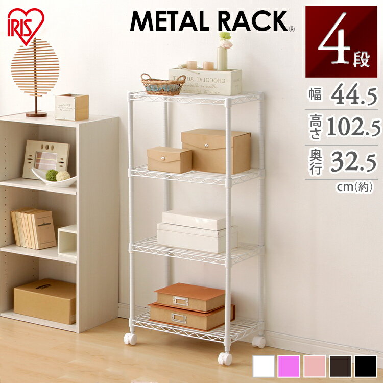 [6/10 12:00~01:59迄P5倍]スチールラック 4段 幅44.5 キッチン 収納 キッチン収納 ラック 高さ102.5 奥行32.5 メタルラック カラー 19mm CBM-44104 カラーラック アイリスオーヤマメタルシェルフ スチールシェルフ シェルフ 収納ラック 棚 ワゴン おしゃれ【送料無料】