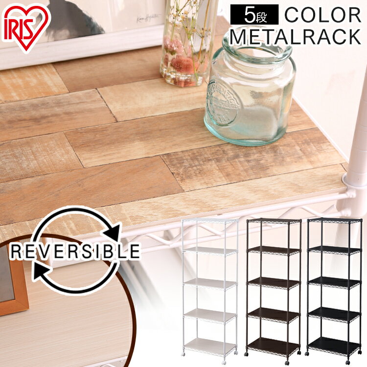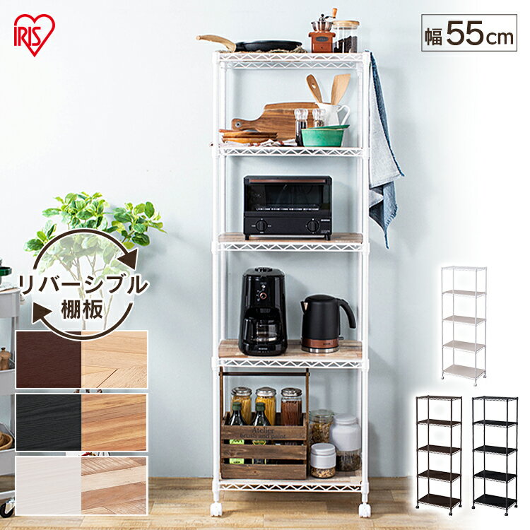 [6/10 12:00~01:59迄P5倍]スチールラック 5段 幅55 ラック キッチン 収納 キッチン収納 高さ163 奥行35 カラーメタルラック ウッドボード付き CMM-55165B ホワイト ブラック ブラウン送料無料 カラーメタルラック ウッドボード付き リビング おしゃれ アイリスオーヤマ