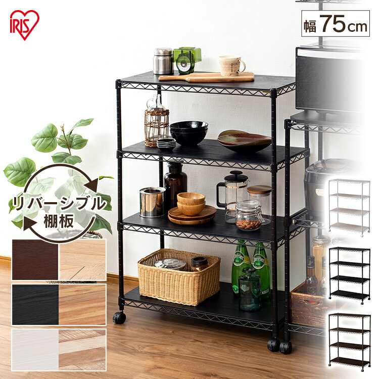 [6/10 12:00~01:59迄P5倍]スチールラック 4段 幅75cm キッチン 収納 キッチン収納 ラック 高さ103 奥行35 カラーメタルラック ウッドボード付き CMM-75104B ホワイト ブラック ブラウン送料無料 収納棚 棚 ウッドボード付き リビング おしゃれ アイリスオーヤマ
