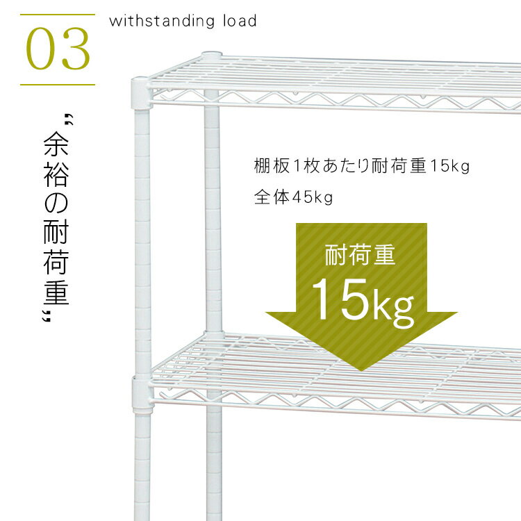 手頃なサイズのカラーメタルラック! ●商品サイズ(約):幅44.5×奥行32.5×高さ72.0cm(キャスター取付時)●商品重量(約):3.2kg●稼働棚板:3枚●ポール径:1.9cm●耐荷重(約)全体静止時:45.0kg走行時:35.0kg棚板(1枚当たり):15.0kg●材質棚板・ポール:スチール(粉体塗装)固定部品:ABS樹脂スリーブ:ポリプロピレンキャスター:ナイロン樹脂(検索用:シェルフ 棚 メタル スチールラック メタルシェルフ スチールシェルフ 収納 オフィス リビング 倉庫 事務所 クローゼット おしゃれ かわいい 子供部屋 一人暮らし 新生活 4905009364374 4905009364381 4905009364398 4905009371068)★